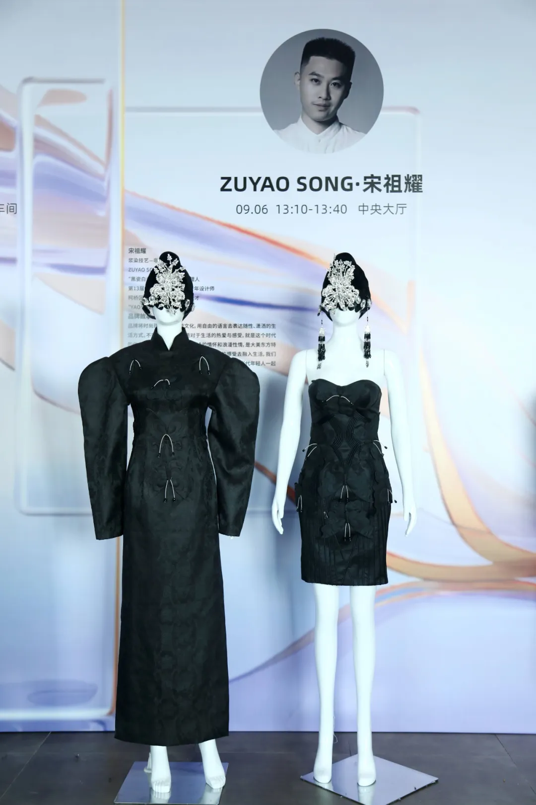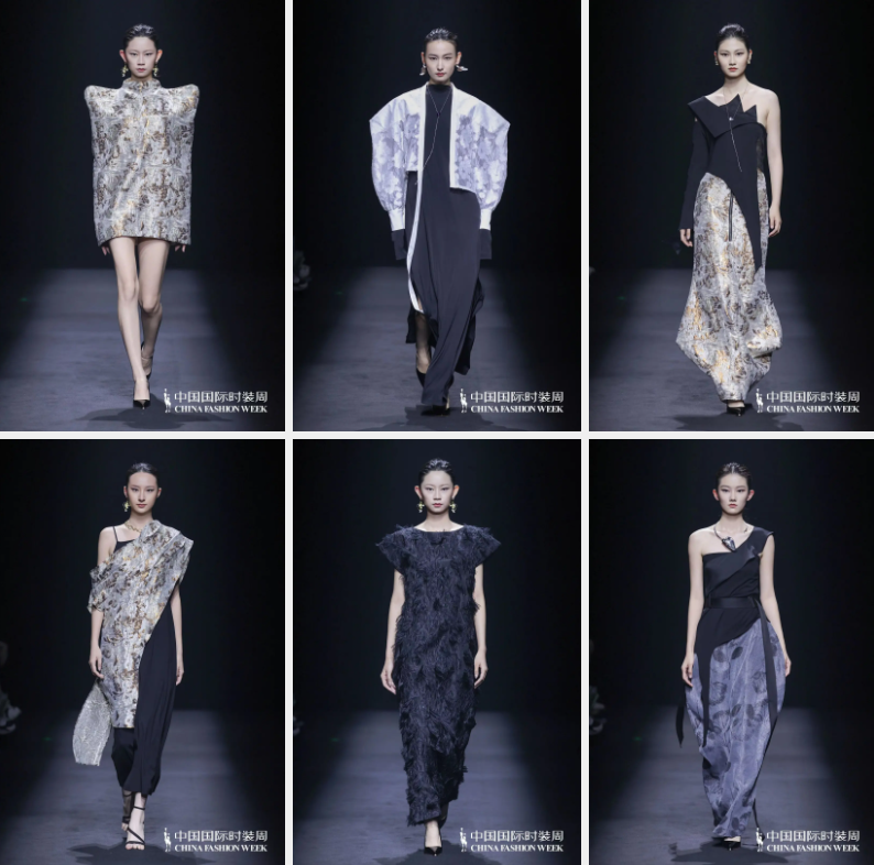 “品牌一直堅持全手工定制,定位于新中式成衣高端服裝,系列設(shè)計將中式風(fēng)骨與西方服飾巧妙結(jié)合,提升了服飾的華美與質(zhì)感。”NANCY'孫、SUNYAO品牌主理人孫瑤本次的設(shè)計靈感來源于曹植《洛神賦》,通過運用肌理感面料以及刺繡、釘珠等手工藝,將華茂春松、流風(fēng)回雪等詞句運用到了「洛神賦·期冀」系列服裝作品之中。她表示,本次與大樹紡織、儷森紡織、蜀潤紡織、策源地紡織、才高繡品、隆凱數(shù)碼印花等柯橋紡織企業(yè)進(jìn)行了合作,從結(jié)構(gòu)、色彩等方面充分挖掘了面料的應(yīng)用空間?!拔磥硐M軌蚋聵蛴懈由钊氲暮献?,用不一樣的設(shè)計理念和方法來體現(xiàn)面料的獨特工藝?!?/p>